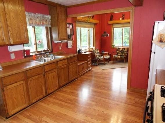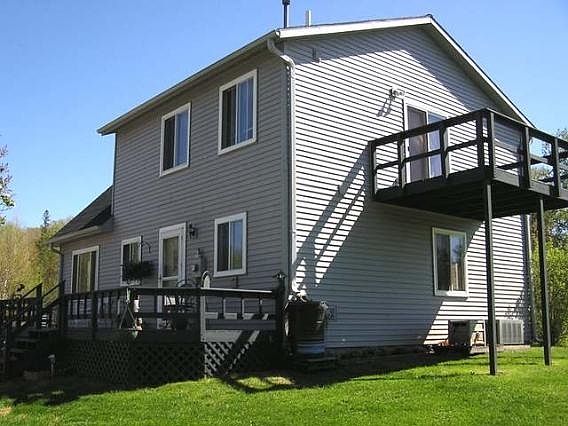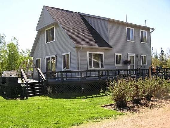 Charming country home on over 8 acres surrounded by County Lands, access to 4 wheel and snowmobile trails, and an abundance of wildlife. This home features 3 bedrooms, 2 baths, main floor laundry, vaulted ceilings, large wrap around deck, 2 plus car detached garage with heated workshop, large perennial garden with shed, and a nicely landscaped yard with apple and plum tree. The home has been well cared for & has newer siding, windows, roof shingles, furnace & hot water heater