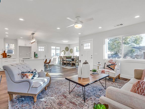 This beautiful home has been completely rebuilt with modern upgrades throughout, making it the perfect blend of style & functionality. Step inside & be greeted by wide plank vinyl flooring that flows throughout the entire home, & recessed lighting creating a sleek & sophisticated feel. The living room is bright & airy with natural light that highlights the beautiful finishes & fixtures. The open concept floor plan seamlessly connects the living room to the kitchen & dining, creating the perfect space for entertaining. The chef's kitchen features white shaker-style cabinets, a center island with seating & sleek quartz countertops. Retreat to the primary bedroom enjoying a walk-in closet & backyard access. The ensuite bath is equally impressive, boasting a large walk-in shower, a 2x sink vanity & separate toilet closet for added privacy. Enjoy 2 additional bedrooms & a modern hall bath with a shower/tub, subway tile surround & 2x sink vanity. Whether you envision a tranquil garden retreat, play area or an outdoor entertaining space, the expansive backyard can be transformed into the perfect oasis. Minutes away from Todos Santos Plaza, Concord BART, parks, shopping, dining, & K-12 schools. Don't miss your chance to own this stunning home.