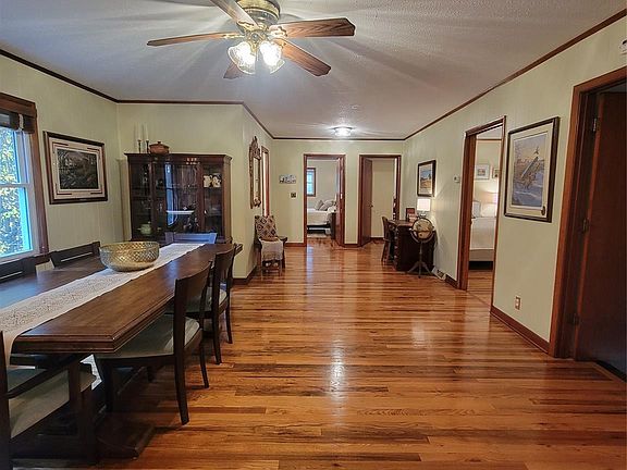 Enjoy one level living with this classic, well-maintained brick ranch& be overwelmed by the "wow" factor of the interior! The original mid-century front door will capture your attention& then, the refurbished hardwood floors throughout the home will take your breath away.The large living room is filled w/ natural light & flows seamlessly into the massive dining area.From here, view the sizeable kitchen which has been updated w/ new tile flooring, wood grain countertops, new stainless appliances& revamped kitchen cabinets. In addition, there are 3 huge bedrooms w/ large closets & natural light.The bathroom is airy & efficient.The basement is freshly painted & has new recessed lighting installed.The WaterGaurd Interior Drainage System will keep this area dry & ready for whatever you can imagine-game room, home theater or basement apartment.Well has new pump and filter. Asphalt driveway. Outside storage building & A BABBLING CREEK! The yard is level and usable.THIS IS A DARK SKY HOME!