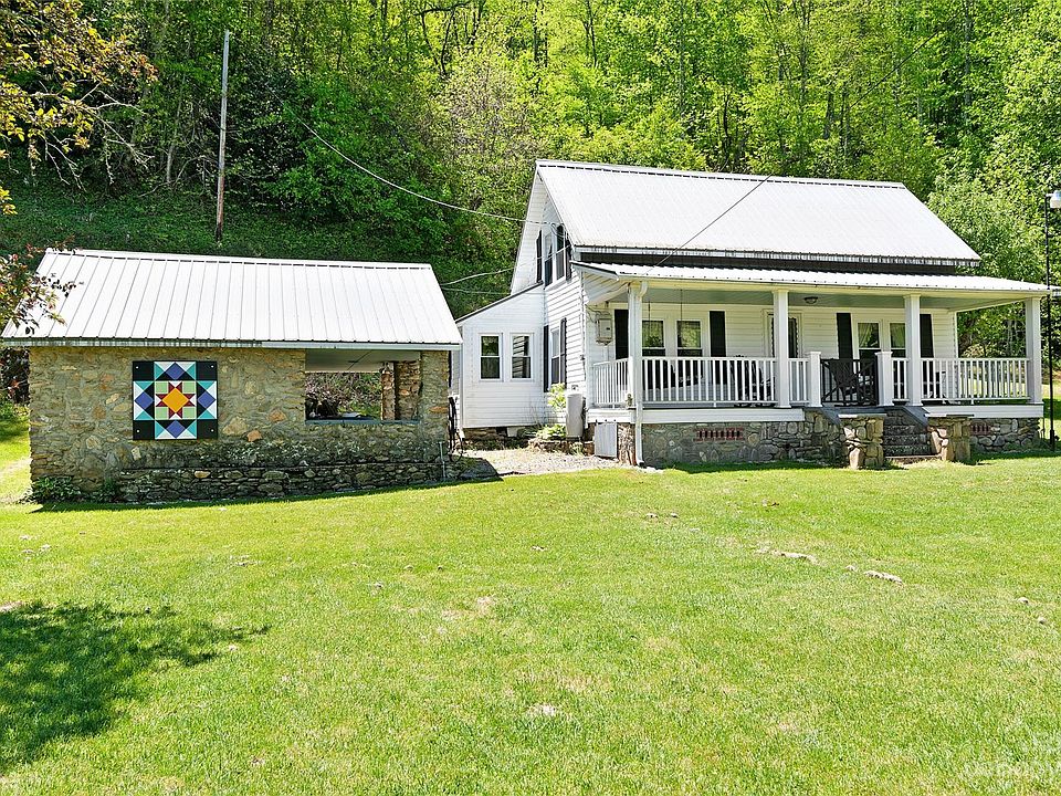 Located in the gorgeous Bethel/Pigeon River/Lake Logan area at the intersection of Love Joy and lake Logan Rd is this stunning and historic farmhouse with 5.04 acres. Enjoy peaceful country living at its best but with good cellular service and wired Zito media cable with cable, phone, and internet available. The beautiful and in great shape farmhouse was relocated to the property from the Sunburst Lumber Company in 1917. Features rocking chair front porch, updated eat-in kitchen, formal dining room, living room with propane log fireplace, main floor laundry room, family room, and main floor full bath. Dining room has been used as main floor bedroom when needed. Upstairs features two spacious guest or family bedrooms with roof line character. Side porch, detached garage, river rock well house, flat land, wonderful garden areas, and serene roaring pigeon river sound complete this rare find get-away or full time home.