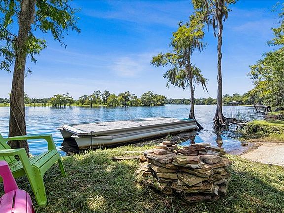Paradise awaits in this beautifully renovated river front home. Enjoy full access to the St. John's River, privacy, top rated schools, and it's zoned for horses too! The farmhouse kitchen renovation includes the addition of a large kitchen island with gas cooktop, a farmhouse sink, double ovens & stainless-steel appliances. Your private master retreat includes built in shelving/bookcase, a large walk in closet & a unique stone sink on the vanity. Another large bedroom on the opposite side of the house is currently used as a media room but could easily become a second master/mother-in-law suite. 2 additional bedrooms can be found just across the hall. No details were forgotten in this renovation: crown molding throughout, porcelain tile, plantation shutters, closet systems in every closet, a tankless water heater, new windows, 24" of attic insulation, new HVAC, whole house reverse osmosis system & water softener, new concrete on parking pad and carport, new drain field, and more drainage tile to ensure dry land around the structures. Outside, you'll find a large corral for your horses with room for more, 2 sheds, a chicken coop, a 30x30 pole barn, a 2-car detached garage, and 3 patio areas with fire pits for alfresco dining and gathering with friends/family. Don't forget to take time to enjoy your 155 ft of river frontage with your private boat ramp, floating dock and another fire pit. Boating, fishing, kayaking, paddle boarding, horseback riding and quiet evenings by the fire can all be yours!