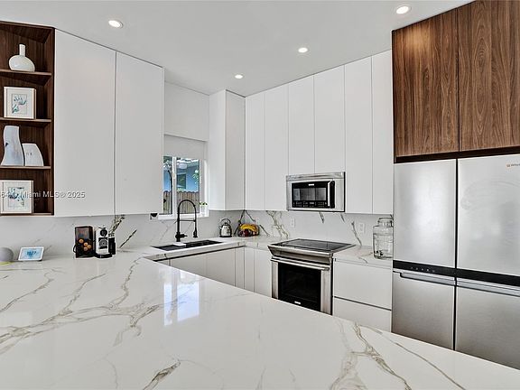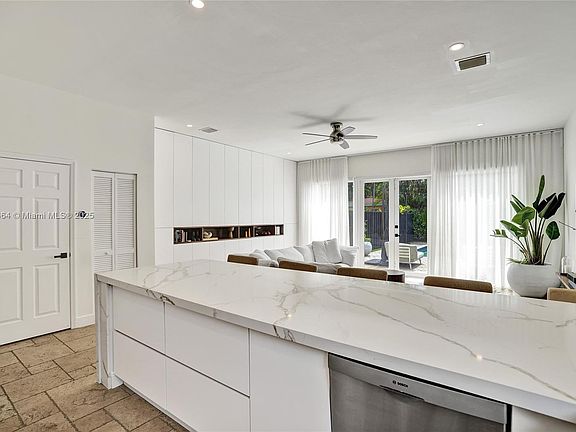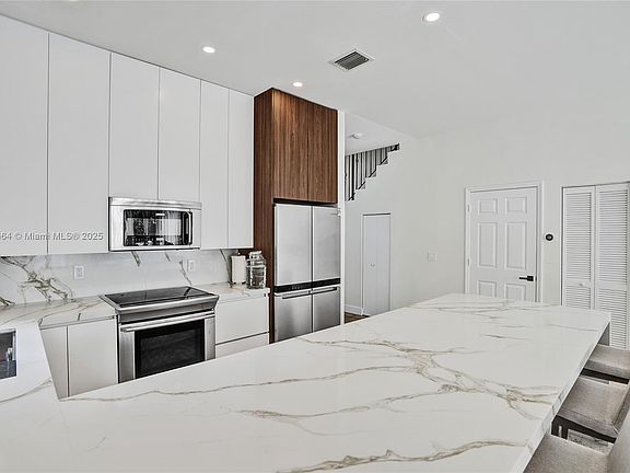 3-bed, 2.5-bath townhome in a quiet Coral Way cul-de-sac, minutes from Coral Gables and Coconut Grove. This 2,830 sq ft home features soaring 20-ft ceilings, travertine marble floors, impact windows, and an open living space filled with natural light. The chef's kitchen includes premium appliances, custom cabinetry, and ample storage. The spacious primary suite offers a remodeled spa-style bathroom with rainfall shower and TOTO toilet. Enjoy a private backyard oasis with pool. Includes 1-car garage, extra parking, and walkability to the Shops at Merrick Park, train station, and top local fitness studios. Prime access to shopping, dining, and top schools.