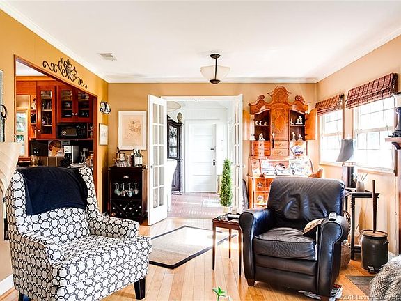 A little piece of COUNTRY in the heart of New Albany. EXTRA-ORDINARY home, professionally decorated and overlooking SILVER CREEK! Seller says home is US Steel with Redwood siding. This Gorgeous property has 3 beds/2 baths, sits on Over an ACRE and butts up to the Creek. Numerous updates in the last 2-5 years include new windows, gutters w gutter-guard, new doors, electric and plumbing. Solid CHERRY kitchen cabinets and fireplace mantle made from a tree on the property. Crown molding throughout. Concrete kitchen counter - Awesome! Center Island stays. Original glass doorknobs. Mahogany paneling in one bedroom and Mahogany floors in another bedroom. Bamboo floors in Living Room. Check out the Atrium with brick floor, French doors, vaulted ceiling with fan. Finished lower level includes built-in mahogany shelving. Screened porch offers fabulous views of the back yard, patio w/hot tub, beautiful landscaping and the creek. All this on a quiet, shady, dead-end street.