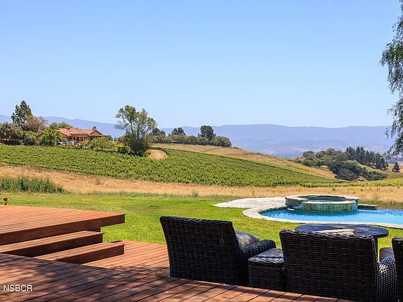 Set within Walking M Ranches along Ballard Canyon, 2851 Tapadero Road captures a peaceful setting framed by sweeping valley and mountain views. Offering 4 bedrooms and 3 bathrooms across approximately 2,499+/- square feet, the home blends comfort, character, and a front-row seat to the surrounding landscape.The living room sets the tone with wood-beamed ceilings, a striking stone fireplace, and oversized picture windows that showcase the scenery beyond. An inviting formal dining room provides an ideal space for entertaining, while the kitchen pairs classic farmhouse charm,complete with a farmhouse sink and stainless steel appliances, with a breakfast area positioned to take in panoramic views.A relaxed family room features built-in cabinetry and wine storage, perfect for casual evenings, while a charming loft accessed by ladder offers a cozy retreat or creative hideaway. The primary suite feels serene and private, highlighted by a skylight and wood-beamed ceiling.Outdoor living shines here. An expansive deck overlooks the pool and spa, creating an effortless setting for entertaining or unwinding against the valley backdrop. A lighted tennis/basketball court invites recreation day or night, while a petite guest house and barn overlook the boutique Petite Syrah vineyard, adding to the property's authentic ranch ambiance.Located within the Los Olivos Elementary and Santa Ynez Valley Union High School Districts, this Ballard Canyon property offers a rare blend of views, versatility, and classic Santa Ynez Valley charm.