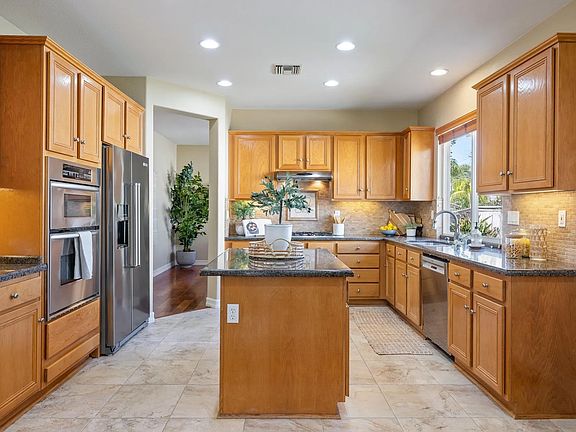 Single-level home nestled in the desirable community of Rancho Carrillo, Carlsbad. This 3 bedroom, 2.5 bathroom home boasts a spacious .26 acre lot. Upon entering, you're greeted by premium engineered wood floors, plantation shutters, ceiling fans in every room, and a large built-in desk offering versatile workspace options. The heart of this home is the gourmet kitchen, featuring stainless steel appliances, granite countertops, and a sizable walk-in pantry. The thoughtful floor plan creates a sense of privacy, with the primary bedroom situated apart from the additional bedrooms. Outside, the expansive backyard offers ultimate privacy, surrounded by mature trees, lemon trees and lush landscaping plus plenty of room for entertaining. Convenience meets luxury with the attached three-car garage, complete with epoxy flooring and acoustic garage doors. Community features: walking trails, heated pool, clubhouse, spa, the historic Leo Carrillo Ranch, RV parking and award winning schools.