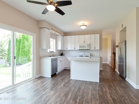 Lakemoor Farms Subdivision, 4 bedrooms, 2.5 bathrooms. Kitchen appliances 2015, washer/dryer 2017, ROOF 2018, FRESH paint,carpet 2015, sump pump 2019, 2281 square feet above, FULL unfinished basement. Fresh white cabinets in kitchen and NEW backsplash! FULLY FENCED 2015 and SHED 2018. House sits on a lovely lot with pond and wetlands, no houses out the back door! Full unfinished basement with some rooms studded in. Big Hollow school and Grant HS. Sidewalks and close to the playground!