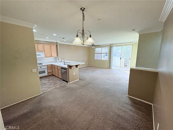 Discover exceptional leasing in the highly sought-after Bella Palermo community. This stunning unit features a light and bright open layout, complete with custom crown molding, and designer finishes. The gourmet kitchen is a focal point, boasting a convenient breakfast counter bar and abundant cabinetry, flowing seamlessly into the spacious living room which includes a cozy fireplace, media niche, and private balcony access with storage. Both the primary and secondary bedrooms are generously sized and feature mirrored wardrobes. A key highlight is the newly fitted carpeting upstairs for superior noise reduction, coupled with the convenience of an in-unit laundry area and an exclusive 2-car garage with direct access. Enjoy the ultimate lifestyle with wonderful association amenities, including a pool, spa, clubhouse, exercise room, and tot lots, all within walking distance to award-winning Portola Elementary, Concourse Park, and extensive hiking/biking trails.