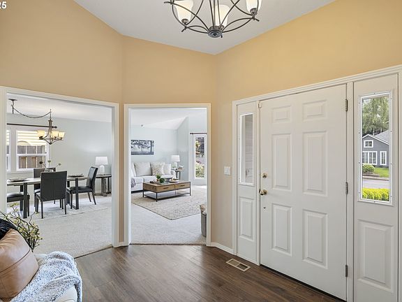 Welcome to Wilsonville Meadows and this beautifully maintained and updated single-level home in the heart of Wilsonville.Set on a quiet loop in a well-loved community, this single-level home features 3 bedrooms, 2 bathrooms, and 2,163 square feet of living space. The layout is bright and open with vaulted ceilings, loads of natural light, and a seamless flow from room to room. Rich LVP flooring and newer carpet add warmth and comfort, while thoughtful updates elevate both style and function throughout.The kitchen is the heart of the home, featuring refinished cabinetry, quartz countertops, updated hardware, and newer appliances—including a cooktop, oven/microwave combo, refrigerator, and dishwasher. A walk-in pantry, island seating, and a cozy breakfast nook with patio access add charm and convenience.The primary suite is a retreat with vaulted ceilings, a walk-in closet, and a fully remodeled ensuite bath with a custom-tiled walk-in shower and soaking tub. Two additional bedrooms offer flexibility for guests, a home office, or both. The updated main bath complements the home’s clean, timeless design.Enjoy a low-maintenance, fully fenced backyard with a covered arbor patio—ideal for relaxing or entertaining. The oversized 3-car garage offers ample space for vehicles and storage, and a dedicated laundry room adds everyday ease.Major updates include a new roof, furnace, HVAC system, water heater, washer/dryer, upgraded flooring, lighting, and blinds. The front yard has been professionally landscaped and leveled for added curb appeal.Wilsonville Meadows offers a friendly atmosphere, parks, trails, and proximity to community pools, top-rated schools, shopping, dining, and I-5 access. This is single-level living at its best!