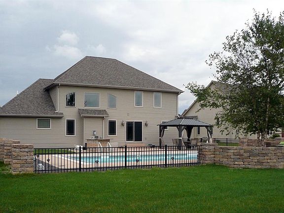 Custom built 5 bedroom, 3.5 bath home is desirable Tuscany neighborhood w/in ground pool & finished daylight basement. Huge open concept kitchen w/granite countertops, double oven & breakfast area overlooking the pool. Living room w/soaring floor to ceiling stone fireplace & wall of windows. Spacious dining room accented w/stone columns. Main floor master suite boasts cathedral ceiling,walk-in closet, luxury bath & large tiled shower. Hand scraped hardwood floors flow throughout most of main level. Upstairs you'll be wowed by oversized bedrooms w/ jack-n-jill bath. Lower level finished w/custom bar, game area, theater room, 5th bedroom & full bath.Entertain guests around the in-ground heated pool, built in stone & stainless steel gas grill, new pergola and fire pit. In ground sprinkler system, upgraded stone & wrought iron fenced backyard. Walking distance to new elementary school!