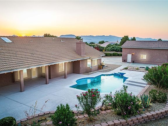 MAKE A SPLASH WITH FRIENDS AND FAMILY*COOL OFF THIS SUMMER WITH A REFRESHING POOL HOME!*POOL AND DECKING WAS REDONE IN 2021(BLASTED AND RECOATED,NEW MOTOR AND PARTS)*GORGEOUS 2381 SF HOME W/ATTACHED 740 SF 3 CAR BOAT DEEP GARAGE*24 X 32 DRIVE THRU DETACHED GARAGE/WORKSHOP,INSULATED 8 FT DOORS & 220 OUTLET*DOUBLE-SIDED 16' RV GATES & FULL-RV HOOK-UPS TO THE NORTH*PERFECTLY SITUATED ON A 0.88 ACRE CUL-DE-SAC LOT*You will LOVE the pristine neighborhood of RANCHO SANTE FE SUBDIVISION*NEW WATER HEATER 2023 W/RECIRCULATION PUMP*Situated on the eastern boarder of the city of Kingman and rising in elevation as you near the base of the mountains*This quiet subdivision is distinguished by its large lots, pride of ownership, and stunning views of the majestic Hualapai Mountain range*Low maintenance landscaping w/front yard consisting of decorative rock,4 mature palms & foliage*DEEP concrete FRONT driveway*side yard with detached garage has a Concrete circular drive that goes all the way around the garage*The quality built home has 2 x6 wood frame & stucco construction, rain-gutters, tile roof ,neutral colored exterior*central AC & heat systems*Large extended patio area with a Water feature for relaxation*pavers and decorative stamped concrete*Inviting covered patio entry*TILE FLOORING THROUGHTOUT HOME EXCEPT BEDROOMS*Spacious living room w/large view windows, pot-shelves & cozy fireplace*formal size dining area off the kitchen*Chefs kitchen with a full size breakfast bar,plenty quality cabinets,granite counter tops with tiled backsplash,Lazy Susan, appliances(5 burner gas stove and dishwasher replaced in 2021), microwave, refrigerator and pantry*Formal dining room/office*King-size owners suite with cozy gas log fireplace*privacy bathroom with dual sinks,separate soak tub,walk in shower,large walk-in closet*3 full size guest bedrooms*Guest bathroom has dual sinks and tub/shower combo*Indoor laundry with washer and dryer & a half bathroom*Truck deep 3 car garage has SMART GARAGE REMOTES(control manual button or from phone)*PERFECT BACK YARD ENTERTAINING W/COOL REFRESHING POOL IN THE SUMMER AND HEATER FOR THE WINTER*the large covered patio plus extended pavers,decorative rock and river rock,DETACHED STORAGE BUILDING WTH LOFT* This back yard is lined with many beautiful trees (37 boxwood, 6 tall pine trees,and 4 palm trees in rear yard and 4 in front yard)