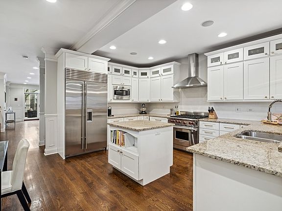 Welcome warmer days! Enjoy our Chicago summer from one of your three private outdoor spaces. The main attraction is the incredible custom roof deck featuring pergola, a fully built-out bar with tv, granite and storage, a shaded living space and large dining area. Perfect for entertaining and watching your favorite sporting events! Other outdoor spaces to enjoy include the large front terrace overlooking your quiet tree-lined street and the rear deck off the living and kitchen, ideal for grilling. Centrally located in the heart of Lakeview, this duplex down has four bedrooms, two and a half bathrooms, a newly updated kitchen, beautiful custom millwork throughout and overall, a great interactive floor plan for your everyday needs! Bright white eat-in kitchen has abundant storage, additional banquette seating, Subzero and Wolf appliances. Spacious living-dining combo in the front of the home has oversized windows, soaring ceilings, custom millwork, and access to the front terrace. All bedrooms are located on the lower level. Retreat to your primary suite complete with a professionally organized walk-in closet and an ensuite spa-like bath with double vanity, separate steam/rain shower, & soaking tub. Three additional generous-sized bedrooms. Full laundry room. One garage space & storage locker are included. Conveniently located to brown/ purple CTA lines for a quick commute and Whole Foods, Trader Joe's, parks, shopping, restaurants, nightlife, and more!