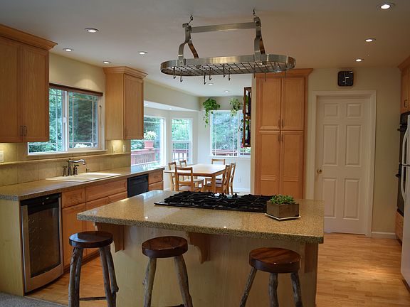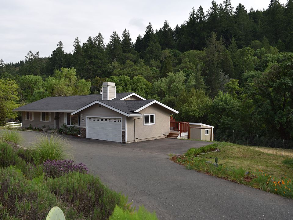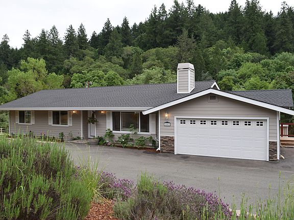 Well maintained single level home in rural setting, with forested hillside view and Mark West Creek frontage. Great property for fun & parties. Plenty of room for your animals & big toys. Circular driveway allows for ample parking. Large deck for entertainment. Lots of sunlight. Big remodel in 2005. Rich maple cabinetry & wood floors in kitchen, dining & mud room/laundry room. Wine refrigerator, 2 ovens, 5 burner gas stove. Master bedroom & bath.