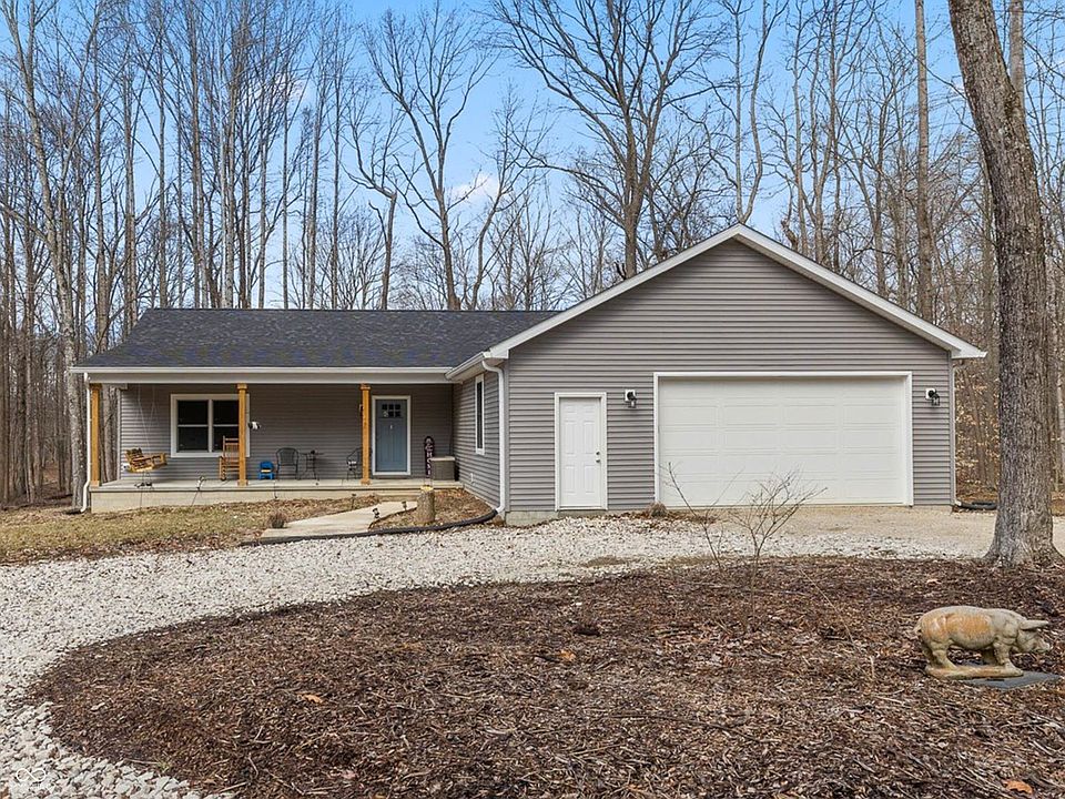 Pump the brakes and finally make that lifestyle change of your dreams! This one has it all! Own this 3 bedroom/2 bath, 1 level home with a 2 car garage, plus a 40'x60' pole barn on a sprawling 9.63 acres with no HOA where Paragon meets Gosport just off SR 67! If you've dreamed of owning a mini-farm, bring your gardening gear and seeds! The property comes complete with a coop - just add chickens! Toy collectors and tinkerers can store all the things in the enormous pole barn with electrical, a 50 amp hookup for your camper, a service door, two 12x16 overhead doors, a concrete ramp, some shelving, plumbing ready for a wood stove (stove & black pipe excluded), and a partial mezzanine for additional storage complete with special support columns made from trees grown on the property! When it's time to unwind from a long day of work or play, there's nothing like driving past the garden through the woods to a secluded, recently built home with a view of the neighbor's 3.5 acre lake from the great room or the brand new deck! The house has a tall, lit and encapsulated crawlspace with a sump pump, a Presby septic system, municipal water and the luxuries don't end there! We haven't even discussed inside! Experience the fresh feel and spoil yourself with the design selections of LVP flooring, tile, quartz countertops, and plentiful cabinets! Move right in and enjoy life to the fullest! Reap the benefits of having land, a pole barn and your creature comforts combined with the peace of mind that your structures, appliances and equipment are all less than 4 years old!