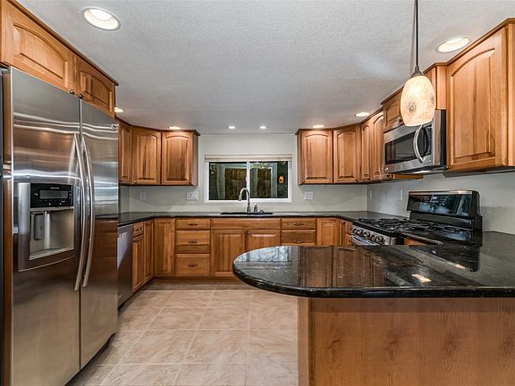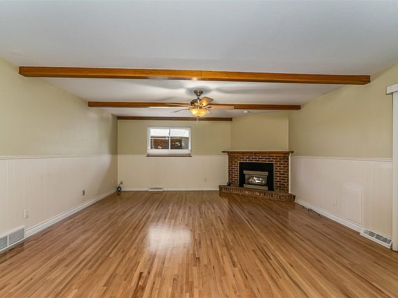 This Denver one-story home offers hardwood flooring, a fireplace, kitchen granite countertops, a kitchen breakfast bar, a master bathroom step-in shower, and a two-car garage.