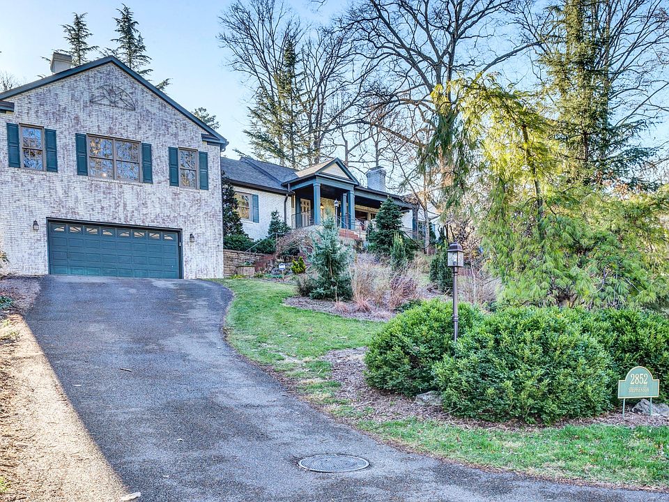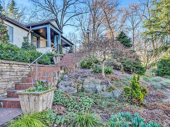 Beautiful, serene location with privacy convenient to hospitals, hiking trails, and public transportation. This home is full of character. On the .30-acre lot is a terraced garden with walls and many varieties of evergreens, deciduous trees, perennials, and unusual specimens with walking paths throughout. There's a whimsical ''blue'' garden room with a disappearing stream. A beautiful terrace awaits you off the kitchen and extends to the French doors in the living room leading to the garden path. It was featured on the Garden Club of Virginia tour in 2018. A Large covered front porch is perfect for entertaining or enjoying nature. The spacious primary bedroom has a gas fireplace, a custom cherry mantle, and a large walk-in closet. The ensuite bath provides a large walk-in tiled shower. There is a beautifully remodeled eat-in kitchen, dining room with fireplace, and living room with French doors leading to the gardens and terrace. A sunroom, three additional bedrooms, a full bath, half bath, and laundry room complete the first floor. The upper level provides a private bedroom, full bath, and attic space. The lower level features a 6th bedroom, half bath, multipurpose room, storage room, and generous two-car garage. There is street parking in the front and back, plus a driveway. A home that can be enjoyed for years to come.