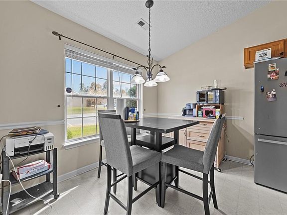 Move in Ready one-level living townhome in Deep River Villas neighborhood! No stairs! This townhome features a spacious layout with a huge living area with vaulted ceilings, a kitchen with an airy breakfast nook, and a private fenced patio overlooking the surrounding tranquil trees. The primary bedroom is thoughtfully equipped with dual sinks, a garden tub, a separate shower, and two closets, ensuring plenty of storage space. Flooring is redone to LVP, no carpet, and kitchen appliances were replaced. Fridge and washer and dryer can remain with an acceptable offer. Assigned parking for added convenience.