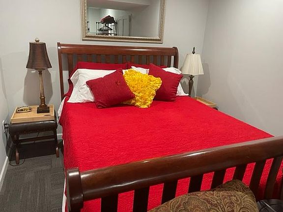 All you need to bring is tooth brush and clothes. Really sharp apartment/suite, private entrance, fully furnished with everything, (2) 55" & 66" TVs, all furniture, leather sofa has recliners on each end. Kitchen has granite counter tops and is fully furnished, pots and pans, dishes, silverware, all appliances, side by side refrig, micro and range, dishwasher, 2 pantries, pedestal oak table with comfortable chairs. 2 queen beds, all linens, towels, bedspreads, private use of free washer and dryer in apartment. Home office with desk and chair. Great apartment while deciding next step in your life plans. SALT WATER POOL shared with home owner who is quiet widow, lives upstairs. Parking just across street. One small dog 25# or less, non shedding allowed with nonrefundable fee. Fenced 1/2 acre yard. Correct phone to call: nine one three two zero nine four four five five Fully furnished apartment, private entrance, home office with desk and chair, all furniture, leather recliners, 2 queen beds, towels, pots and pans, side by side refrig, range/oven, dishwasher, microwave, dishes, granite counter tops, pantry, 55" TVs in bedrm and living rm, all utilities included. Tenant must be diligent to turn off TVs and lights when leaving. Washer and dryer free. WiFi free. Lease term can be 6 month or more. 1 small quiet dog only, no cats. One or two people max.