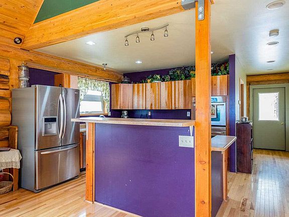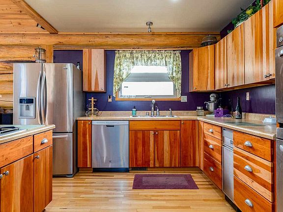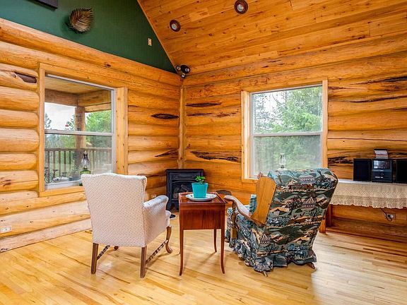 Breathtaking water views surround you in this custom LOG HOME! Live the dream of being in the country but only 25 minutes to town! Great room w/gorgeous kitchen, soaring 22 ft. open timbered ceilings take advantage of light and VIEW! Master loft w/great closet and storage. Main floor bed and laundry. 2nd family room with in-law set up + 3rd (non-egress) bed in the daylight basement. 2 car heated garage w/meat cooler, chicken coop, storage/pump house. View deck, lake access road, solar panel system.