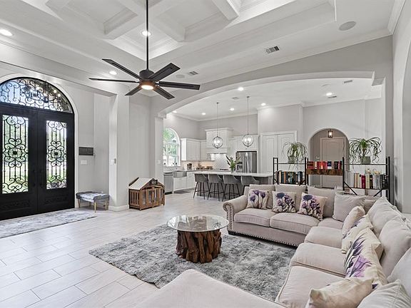 Welcome to 28526 Riverside Crest. Sitting in the heart of Commons Waterway, this 2018 custom home truly has it all! Situated on just over an acre of land, this gem offers you both tranquility and convenience. Perfect for the outdoor enthusiast, this subdivision offers a private beach, private pool, private fishing areas, miles and miles of private biking and walking trails and so much more! Sitting just minutes from the bustling city but still offering that country feeling, this amazing home leaves nothing to be desired featuring an open floor plan, quartz countertops, ample storage space, a HUGE extended covered outdoor patio, modern tile flooring, surround sound speakers throughout the home, top of the line appliances, and a great split floor plan! Zoned to HuffmanISD with a low HOA! Schedule your tour today and start living the life you deserve!