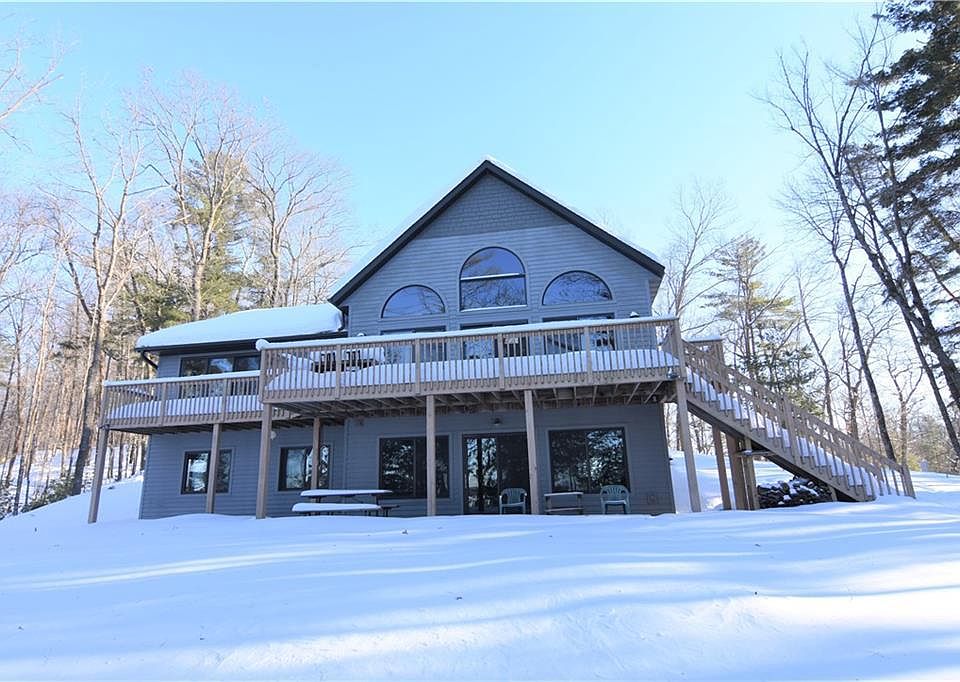 The shores of pristine Lower Long Lake welcome you to your new cabin. Listing includes adjacent waterfront lot valued at $400,000. The home was built by an excellent local builder in 2011, offering an open concept main level with Fir floors, Hickory cabinets, and beautiful lofted Cedar ceiling. The design brings the beauty of nature inside with abundant windows on both levels, floor to ceiling glass in great room and large lakeside deck. Spacious bedrooms with plenty of room for the entire family. Lower level walkout with large family room. Workshop in basement could easily be a fourth bedroom. Forced air heat with electric backup in basement. A gradual walk to the water's edge takes you to a desirable sand beach, perfect for swimming. Westerly views provide amazing sunsets over the water. Gazebo by lake for storage. Room to build garage/shed. Unmatched privacy on one of the deepest and cleanest lakes in the area. Just 40 minutes north of Eau Claire and 2 hours East of Twin Cities.