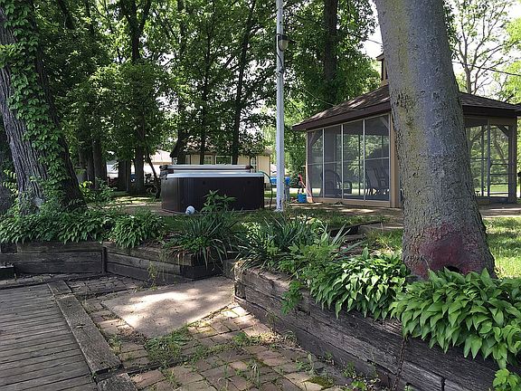 Studio cottage...one big room, with wood burner, small kitchen and bath with shower. Screened in Gazebo with electricity, 1.5 car detached garage (extra deep) Comes with floating docks