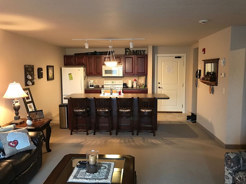 Open concept condo with 1 bedroom and 1 bathroom on ground level. Beautiful Red Cedar Lake view. Use for personal time or investment to join the rental pool. Pool and hot tub are in the same building as this unit. All appliances including washer/dryer are included. Private party listing to save both parties money.