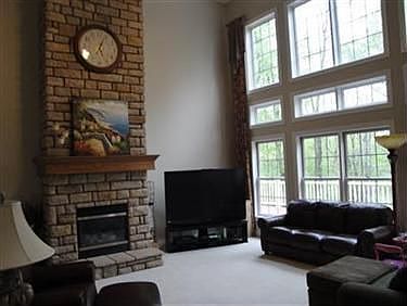 Great Room features 18 ft. stone,gas fireplace,& a full wall of windows with pond and woods view* Kitchen has maple cabinets, wood flrs, breakfast bar,and solid surface countertops*Formal Dining Room has a trayed ceiling*Morning Room(sun room) features lots of windows, hardwood floors,vaulted ceiling with skylights, and access to deck * The first floor Master Bdrm features vaulted ceiling with skylights, access to deck,& a bath with double sinks, jetted tub, and shower*The upstairs features a loft,full bath, 2 bdrms,& a bonus room that could be a bdrm, family rm...endless potential for about anything you would need* 3 car garage has a gas line for a heater, sink with H& C, cold water spigot, and 220 for the power tools *Professionally landscaped front and byard * Vinyl fenced byard * Deck across the whole back of home * Patio off the walkout basement * Invisible pet fence in the front and byard * Bsmt is plumbed for 3rd bath* Short Sale- Pre-approved list price by the Lender.