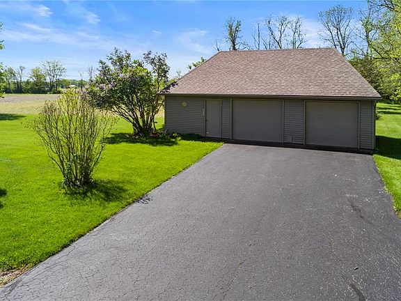 BACK ON THE MARKET â REDUCED $25,000. Spacious Living Room that flows into peaceful sitting room & enjoy two-sided fireplace from both rooms. Great for entertaining. New upgraded eat in kitchen w/ Decora maple cabinets, porcelain tile, stainless steel appliances and gorgeous honed granite countertops. Kitchen joins formal Dining Room, perfect for entertaining. Lg Bedrooms, freshly painted closet space & 2 ½ Baths. Lg Rec room, hobby room & new laundry downstairs. Plenty of room above the attached garage. Detached garage is the size of 3 bays allowing for workshop & offers tons of storage or possible carriage house above. Property incl. 2.65 acres to enjoy wild life & country living only 10 minutes from Grand Park & other amenities.