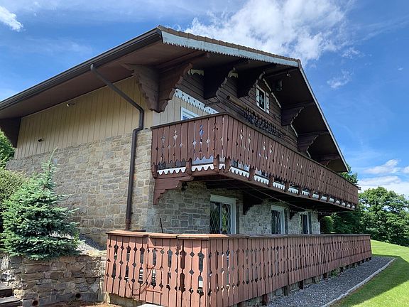 Switzerland atop Greenbrier Mountain. A private estate accented with exquisite craftsmanship, breathtaking views of The Greenbrier and White Sulphur Springs. 45+ acres. The Swiss Chalet, with spectacular architectural design, features 4-5 bedrooms, 2.5 baths, double balconies, 37 ft X 12 ft X 5 ft thick limestone chimney, 19 ft cathedral ceilings, wormy chestnut walls with oak and chestnut beams. The interior is an open floor plan, 3 levels of living space including a loft with private balcony, and outdoor entrances from every room. Enjoy the outdoors with a stone floored arbour, fire circle patio, garden areas, riding corral, goat pen, pastures and woodland. 21X50 Garage.Land: additional view building sites, joins the Greenbrier Sporting Club. Good road access.Private Entrance. Glen Andrew Road, White Sulphur Springs, WV 24986 Truly a combination of European design and American craftsmanship, the Baud Estate is a unique property rendering the best in mountain top living, self sufficiency, and endless possibilities. An additional document is located under the Documents tab. The document, "Construction History" is written by Paul Baud, owner, whose vision and "first hand" involvement created, not only an estate property, but an experience for every guest, family member, and child who was fortunate to visit "the Swiss Chalet" atop Greenbrier Mountain. Set the picturesque scene: From the secondary Glen Andrews Rd, take the wind in the private drive 0.2 mile thru the lush canopy to the top of the mountain which opens to endless blue skies before spanning the mountain view. The following list is a "feature list" highlighting the property. 1. Completed in 1968, the house has an outside appearance of a Swiss Chalet. The interior was designed with an open concept, unique at that time. The European theme continued in the additional buildings, landscape, and entertainment spaces. 2. Water system: Well- 600 ft; Cistern- a completely separate system which is located at the lower deck 3. Fireplace/ Chimney- A major focal point of the home. The limestone stones were repurposed from an Inn at Salt Sulphur Springs (circa 1800s.) The chimney is 37 ft in height, 12 ft wide and 5 ft thick. It is rectangular in shape and was built by 3 people from Union, WV. There is a stainless steel liner in the chimney. The fireplace area is sandstone. Owners maintained chimney via frequent inspections. 4. Cathedral ceiling is 19 ft to the center peak. 5. Roof: The roof is metal, an imitation of wood shingles from New Zealand. The roof has a product guarantee of 50 years, labor is excluded. Roof was replaced within the past 6-8 years. 6. Appliances convey. Refrigerator is ~3 years old. 7. Outdoor entertainment areas highlight the property. The stone patio at the entrance of the house provide the perfect morning experience. Two decks span the entire length of the house. The upper deck, perfect for entertaining, overlooks the village and the valley. The upper deck floor is redwood. The lower deck is accessible from each bedroom. The floor is slate. 8. The ornate trim, the gingerbread, for the house was made by Paul Baud. 9. Windows were replaced approximately 20 years ago, keeping the European style. 10. Kitchen: Cabinets custom made by Alex Freeman, considered one of the best carpenters in the area. Backsplash is cooper. Light fixtures in kitchen and dining area are from Mexico. 11. The arbour, floored with soapstone, and surrounded by years of manicured grapevines, conjure a true European ambience. Brick floors accent both sides of the grape arbour area. The fire circle patio is accented with long range valley views and perfect for night skies. 12. Owners have blueprint of the house. 13. Garage/ Workshop is 21 X 50. The Land: 1. The 45 acre property consists of both sides of Glen Andrew Road. There is approximately 25 acres pasture/ fields, and 20 acres, woodland. The pastures are relatively flat to rolling. The land offers multiple building sites with panoramic views. The corral area is located on the knoll behind the house. This field is excellent for horses and cattle. An additional goat area and garden area is located to the east of the house. 2. Spring on lower section of the property close to the entrance. 3. One of the most unique outdoor features is the lightning rod which serves as an arrestor. Due to the location atop the mountain, the owner wanted to assure lightning was not a problem. There is a lighting rod 200 yards from the house. 4. Property is fenced.