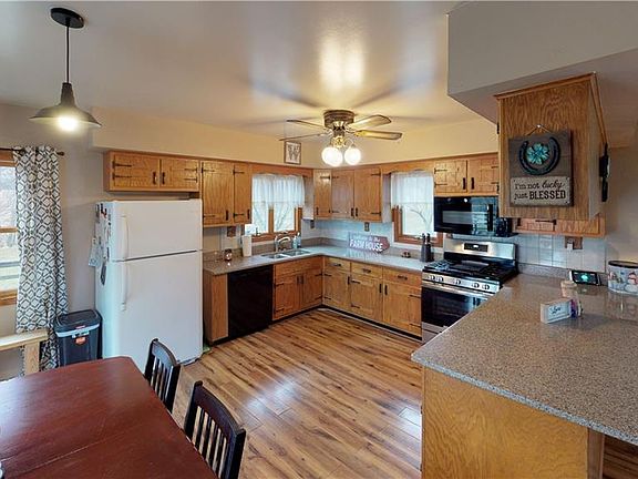 WOW! This home features open concept, huge pole barn with heat and concrete floor, a little over 4 acres of land with a creek running through it, all in the Mt Zion school district. Great kitchen that opens to the dining area and living room. Deck right off the dining to enjoy the outdoors. Third bedroom has the washer/dryer in there now but can be moved to the basement or left on the main level.