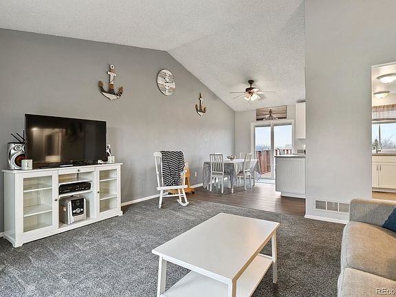 All measurements are approximate. This great home includes fresh exterior paint (completed first week of April), brand new carpeting. The recently remodeled kitchen is complete with mountain views, gas stove, Corian counter tops, large island, pull out pantry (to the right of the refrigerator) and a trash/recycle bin next to the dishwasher. The upstairs living room features a large window for plenty of natural light. The primary bedroom has a walk in closet with a built in safe and private access to the full bathroom, and don't miss the mountain views from the bedroom window. Downstairs you'll find a family room with wood burning fireplace, a third bedroom (closet is currently being used as laundry) and a 3/4 bathroom. In the backyard, you'll find a newly painted deck, leading to a covered patio with outdoor ceiling fans, a garden area with irrigation solar lights, a storage shed painted to match the house at the beginning of April and a peach tree!