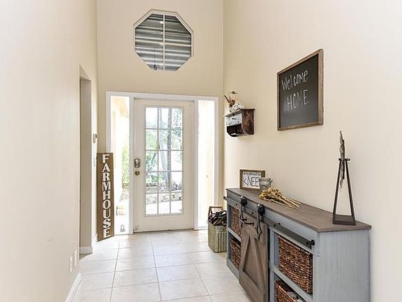What a great opportunity to own a 4 BR 2 BA home in Martin County! This is the open floor plan everybody is looking for! Volume ceilings, spacious dining room, living room, great room, kitchen with breakfast bar, stainless steel appliances and tumbled marble backsplash. Gorgeous tile floors and plantation shutters. Spacious master bedroom suite with fantastic walk-in closet and large MBA with the dual vanities and sinks. Wonderful screened in patio with tiki bar and gas heated hot tub ideal for entertaining and family gatherings! Community offers heated pool, exercise facility clubhouse, basketball court, tot lot, RV boat and trailer storage boat launch and more! Pet and truck friendly too! Close to shopping, dining, I-95 and more!