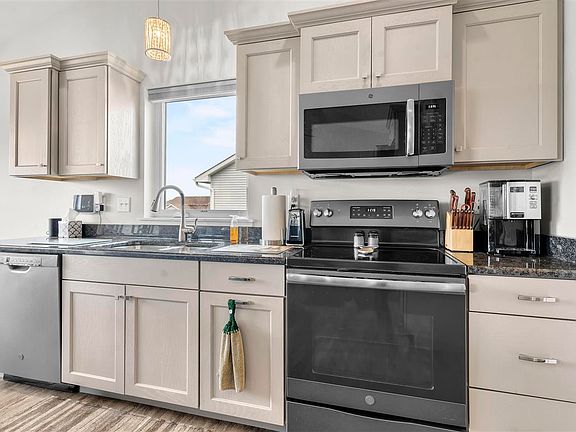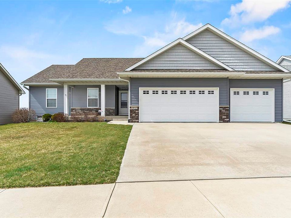 Welcome to 2853 Wagon Wheel Drive in Iowa City, a stunning ranch-style home that offers the perfect combination of modern living and natural surroundings. Built in 2018, this home is still like new and boasts numerous updates that will surely impress you. As you step inside, you'll immediately notice the open floor plan that creates a spacious and inviting atmosphere. The main level features a comfortable living room, a stylish kitchen with sleek countertops and stainless steel appliances, a convenient main floor laundry, and a master suite with a private bathroom. With a total of 5 bedrooms and 3 bathrooms, there's plenty of room for a growing family or for hosting guests. One of the highlights of this home is the finished walkout basement that provides additional living space and room for storage. You'll love spending time in the large family room or entertaining guests in the bar area. The walkout leads to a beautiful private backyard, offering a serene setting for relaxation. This home also comes with a 3-car garage, providing ample space for parking and storage. And if you're looking for energy-efficient features, you'll be pleased to know that the home is equipped with solar panels. Located just off S Gilbert, this home is conveniently situated near the Terry Trueblood Recreation Area, which offers plenty of outdoor activities for you to enjoy. With so much to offer, this home is truly a must-see. Don't miss your chance to make it your own!