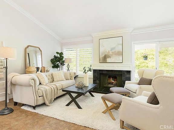 Welcome to your forever home in the heart of the desirable Casta Del Sol community, a haven for active 55+ adults seeking a vibrant and fulfilling lifestyle in beautiful SoCal. This meticulously maintained and updated single-story Rosa plan is a true gem offering a perfect blend of comfort, style, and convenience. The interior offers an abundance of natural light that showcases the spaciousness of this thoughtfully designed home. With high ceilings, crown moldings, dual pane windows, and elegant shutters, the home is both comfortable and sophisticated. The versatile plan includes 3 bedrooms, one of which currently serves as a home office/den with double doors, providing flexibility to suit your needs. The redesigned kitchen offers a coffered ceiling, central island, granite countertops, stainless steel appliances, and custom cabinets. The open living room is a cozy retreat with a marble fireplace, dual pane sliding glass doors connecting the indoor and outdoor spaces, leading to a private patio surrounded by a lush landscape. The master suite is a sanctuary of luxury, with a shower/tub, dual sinks, and a custom walk-in closet. The secondary bedroom is located on the opposite side of the home for comfort and privacy, adjacent to the secondary bathroom, and convenient inside laundry area. The attached two-car garage has ample storage with built in cabinets and pull-down attic stairs. Beyond the confines of this beautiful home on one of the best streets, the community has two recreation centers offering activities and clubs to fulfill every interest. Enjoy pools, a gym, meeting/banquet areas, a billiard room, library, craft rooms, BBQ areas, and fire pits, and access to Lake Mission Viejo. Trash pickup & outside painting are covered by the association. Seize the moment and make this special property your own.