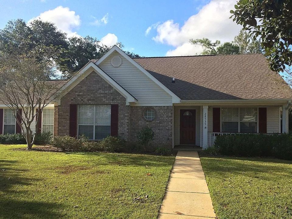 3 Bedroom home in Canterbury Subdividion. Situated on a corner lot, this home is conveniently located within walking distance to Daphne High School, and a short drive to Malbis and I-10. This home features a large living room with vaulted ceilings, split floor plan, gas range in the kitchen, and a two car garage with a side entry. Backyard is fenced. New wood-look vinyl flooring in the living area and guest bathroom. There is new carpeting in all three bedrooms! The house is a non smoking property and pets are negotiable. Tenant is responsible for all utilities and to keep all utilities connected for the duration of the lease. A security deposit is required and equals one months rent. Tenant is responsible for maintenance of the yard and to be in compliance with the HOA rules and regulations. This is a non-smoking property and pets are negotiable.