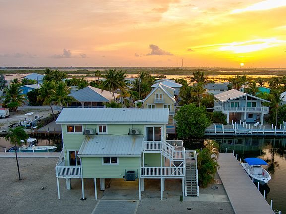 Ultimate Boater's Dream Home on a Large Corner Canal Lot With Sunset Views! This fabulous 3-bedroom, 2 1/2 bath stilted residence offers 213ft of expansive waterfront along a 50ft Wide Deep Canal on Little Torch Key. With its coastal relaxed charm, the home rests on a generous 9,895 square foot lot bordered by canal frontage. The first floor introduces a spacious living room that seamlessly flows onto an expansive deck, perfect for the ultimate Keys entertainment experience. An independent chef's kitchen, complete with a dining area, connects effortlessly to the deck through impact glass sliding doors, providing convenient access to the outdoor grill. Adjacent to the kitchen is a separate laundry area with its own entrance, simplifying the task of unloading groceries; or towels after an exhilarating day on the boat. The Primary Suite is situated on the main living level, featuring an ensuite bathroom and a private deck. A separate Powder room is also located on the first floor. Upstairs, two beautiful guest bedrooms share a bathroom, both adorned with soaring cathedral ceilings and individual mini split AC units. The larger bedroom has its own private access from the deck below. Throughout the home, cathedral ceilings add to the sense of space. The home has a metal roof, impact windows and doors; and Hardie-board siding. Enjoy stunning sunset views along with tantalizing peek-a-boo open water views from throughout the home. There is an outdoor shower and separate storage. A composite dock extends the full length of the canal property, accommodating multiple boats. Deep-water access is perfect for larger boats! Just minutes by boat to nearby attractions like Picnic Island, the renowned Little Palm Island, Looe Key, American Shoals, as well as exceptional opportunities for world-class fishing and diving. There is plenty of room to build your dream pool and spa. Successful monthly vacation rental. Experience the epitome of boating and island living! Easy to show!