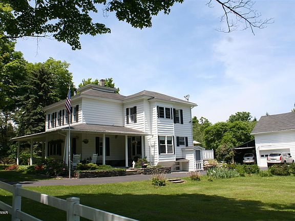 PLEASANT MT. FARMHOUSE - 2.3 ACRES - Very charming, renovated Victorian Farmhouse on beautiful landscaped, park like setting with numerous perennials & fruit trees. Ideal for mini farm, gardening & room to play. Home features large wrap-around stone porch, 10 ft ceilings, crown molding, working fireplace & hardwood flooring. Four bedrooms, 1 full, 2 half baths, library, eat in country kitchen, formal dining area, screened in stone porch & deck. Two story barn, ideal for storage. Other out buildings, would work for additional storage, garden shed or small animals.Convenient to 300 acre State Lake and Gamelands. 10 minutes to Elk Mt. Ski area.