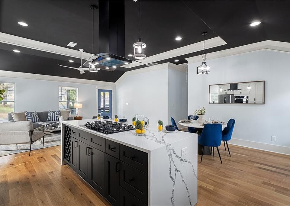 - Features: Cabinets White, Eat-in Kitchen, Kitchen Island, Pantry, Stone Counters, Wine Rack