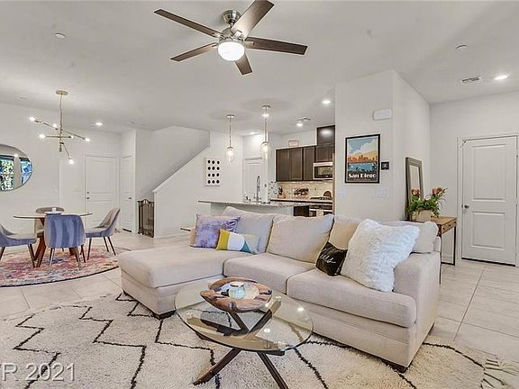 Lovely light and bright, 3 bedroom, 2.5 bathroom, 1598 sq ft, 2 story townhouse built in 2018 is move in ready! Upgraded kitchen with granite countertops and stainless steel appliances opens to a modern flexible floor plan. Generous en suite primary bedroom is nicely separated from 2 additional bedrooms (that could easily be used as a home office), and an upstairs laundry, This truly is a space that is charming and functional! Nestled in the highly desirable master planned community of Inspirada. Neighborhood amenities include 4 community parks with playgrounds and 3 community pools. Terrific location just minutes from shopping, and restaurants in the heart of Henderson.