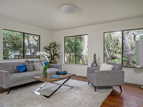 Nestled in the famous Del Monte Forest, this split level contemporary home has many upgrades and adjoins the greenbelt of Pebble Beach for added privacy and serenity. Floor to ceiling windows in the living room invite abundant morning light, while the west facing deck near the dining area brings in afternoon sunshine and warmth. Four beds and three baths, plus bonus room on lower level. Fireplaces on upper and lower levels. Kitchen and baths were tastefully remodeled with granite, tile, and hardwood floors. Don't miss this opportunity to own in the famous Pebble Beach Community. Pacific Grove School District.