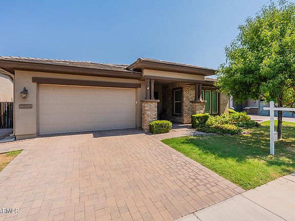 Cool grass and stone pavers welcome you to this beautiful home. Enter into the spacious entry and wide hallway. Plenty of open space in this house! Two guest rooms with a jack n jill bath, A flex room perfect for a den, office space, TV or library room. The laundry room has space for a freezer or 2nd frig! The garage has nicely epoxied floors and is a 3 car (tandem). However, the kitchen with great room is the star with an island that spans across with a beautiful countertop, 5 burner gas stove, two ovens and a huge pantry room. The owner's suite is complete with a large bath including two vanities, soaking tub and spacious remodeled shower. Make sure you don't get lost in that large closet! The comfortable backyard patio is the perfect place to relax and enjoy the low maintenance landscaping. For peace of mind, 5 Ring security cameras are installed inside and out. This home is very well taken care of. Community has pickleball & tennis courts, playground, basketball court & volleyball sand court. Close to shopping, amenities, and all the goodness Gilbert has to offer! Come see the value for yourself!