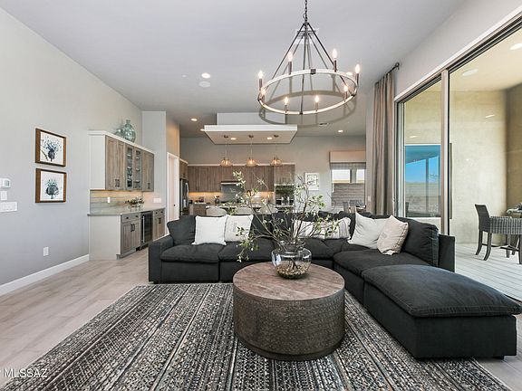 Fairfield Home New Construction, Acacia Plan in gated community has 3 bedroom en-suites with teen retreat/flex room or bonus room. Office and a large great room. Large walk in pantry with extra storage. 12' ceilings in main living area. 8' Interior Doors with a 16 x 10 Multi sliding door to let the outdoors in. 3rd bay garage has a 2' extension for ample space and double bay garage. Cozy up to the 48'' linear fireplace in great room, or the beautiful open space out your backdoor. Taxes are based on home and lot prior to split. Price is subject to change once colorization and design is complete. Estimated completion summer 2023. Renderings are conceptual and may not depict final product. ALL INTERIOR SHOTS ARE FROM OUR MODEL HOME IN DOVE MOUNTAIN