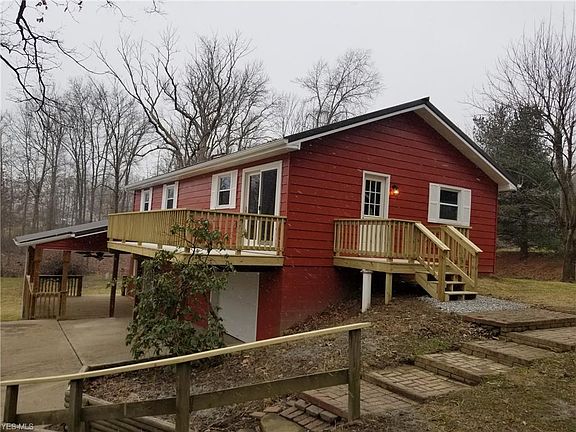 Freshly remodeled three bedroom raised ranch on two acres. Large rec room on lower level with fireplace and walkout to a covered deck for in and outdoor entertaining. Interior updates include complete new bathroom, kitchen, flooring, and lighting. On the outside it received several new decks, steel roof, gutters, doors, and more. New well pump, piping, and wiring. Nice corner lot with woods and creek. Brand new dishwasher, stove, and microwave. Make this cozy home yours. Agent Owned.