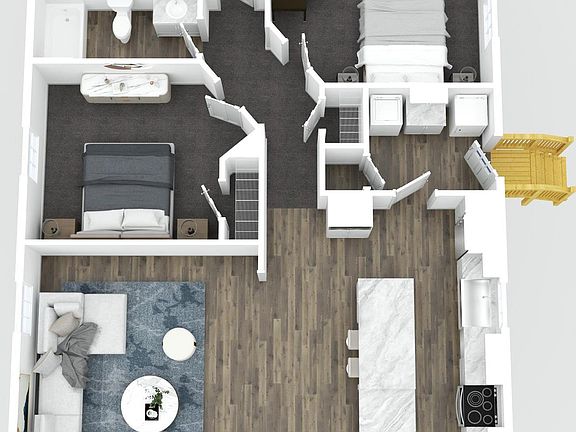 - Bedroom on Main Level, Kitchen Island, Stainless Steel Appliances