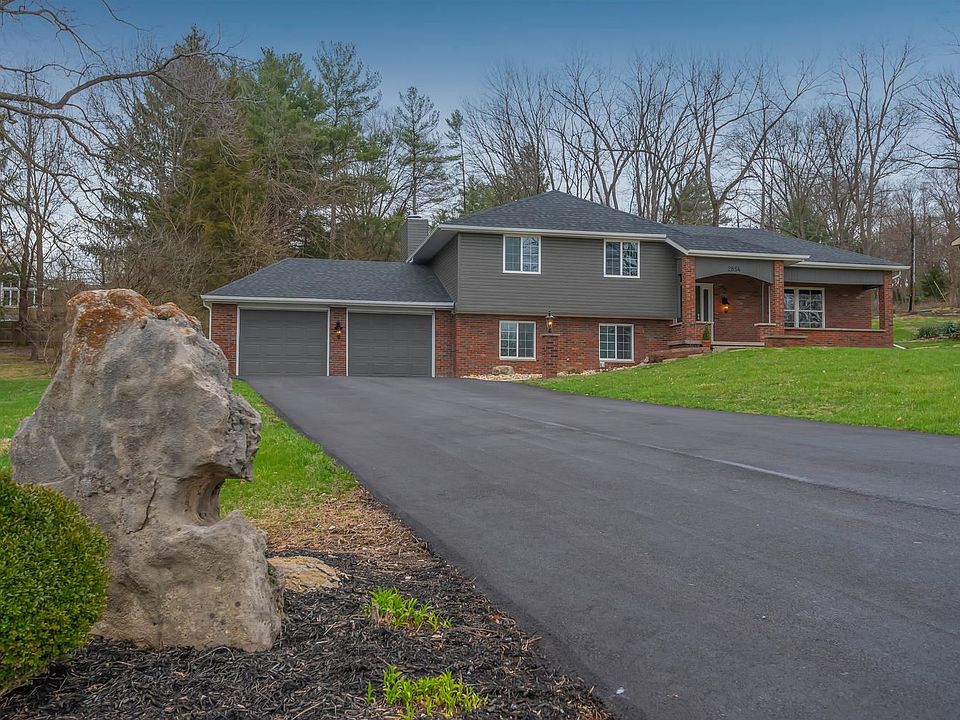 This well constructed Brick Tri-Level home sits on a 1/2 acre lot, over-sized 2 car garage, the new kitchen includes a built in granite desk, granite counter tops, custom cabinets from kraftmaid, black stainless steel appliances to complete the kitchen, it has 4 bedrooms, 3 full baths, utility room plus a family room with a brick gas fireplace. A deck is off the kitchen with a patio and a shed sits to the back of the property for your lawn care needs. New floor covering throughout, updated bathrooms, new furnace/ac, new water heater, new lighting and fixtures throughout with new windows, the deck and patio out back. The main floor includes the kitchen and living area. The upper floor has 3 bedrooms including the master with full bath with another full bath on the same level. The lower unit has a family room, bedroom plus another full bath and utility room.