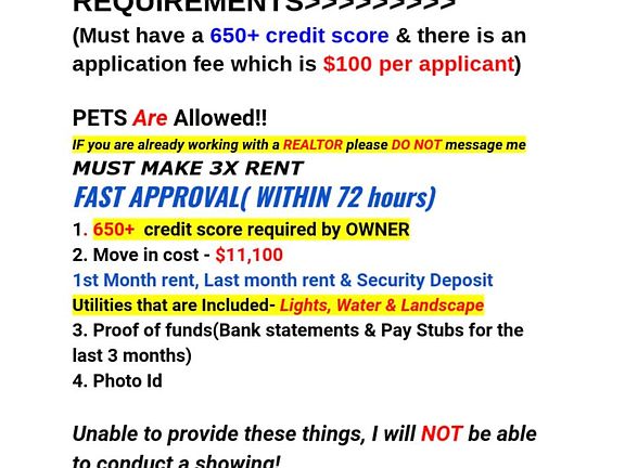 Requirements are as follows: -Must consent to Background & Credit Check -650 Minimum Credit Score -$100 Application Fee ($150 per couple) -$3700 Per Month -2 Security Deposits ($7400) -Verifiable Income proving 2.5-3 times the monthly rent (Last three months of Pay Stubs -OR- 6 Months of Deposit Statements) This beautifully renovated 4 bedroom 2 bath single family home sits on a corner lot. It has been immaculately upgraded inside and out with a custom kitchen, bathrooms, tiled floors and recessed lighting throughout. Kitchen features crisp white cabinets with a stainless steel appliance package and an in home washer & dryer....Wait! There's more-Lights, Water & Landscape INCLUDED in monthly rent! Do not wait to call/text listing agent for showings as this property will not last. Available for March 19 move-in. This home also has a private attached efficiency which is rented separately. Give me a call today! Owner pays for Lights, Water & Landscape. First month & two securities required for move-in. Requirements are as follows: -Must consent to Background & Credit Check -650 Minimum Credit Score -$100 Application Fee ($150 per couple) -$3700 Per Month -2 Security Deposits ($7400) -Verifiable Income proving 2.5-3 times the monthly rent (Last three months of Pay Stubs -OR- 6 Months of Deposit Statements)