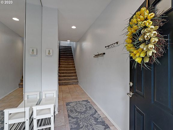 Multnomah Village END-unit townhouse tucked away setting off the road. Main level features tall ceilings & abundant windows; Spacious family room & Kitchen/Dining/Living combo with access to deck & private, fenced yard. Upper level has King-sized master with double sinks, walk-in closet + two additional bedrooms, laundry & loft. Two-car garage + additional bonus room; Ideal for home gym or office. Outstanding location; Short stroll to vibrant village shops/eats + easy freeway access to downtown. [Home Energy Score = 6. HES Report at https://rpt.greenbuildingregistry.com/hes/OR10183433]