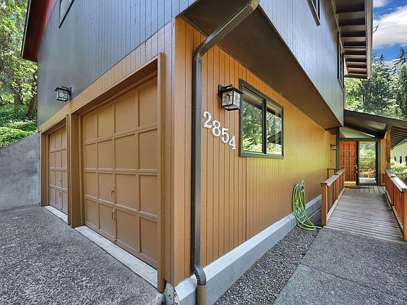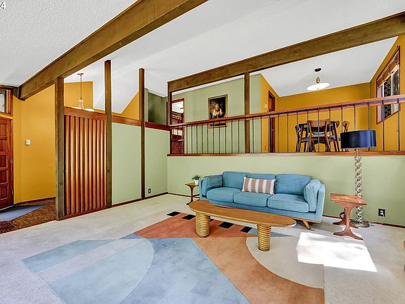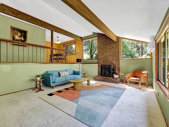 Mid Century Modern home perched on a hillside in the picturesque SW hills! Nature mixes harmoniously with city living in this peaceful neighborhood. Upon entering into the first floor of this split-level home, you are greeted by vaulted ceilings with exposed beams, a cozy wood-burning fireplace, 1/2 bath and a bonus flex space! There is an ample supply of windows throughout offering great natural lighting. Follow several steps up from the main level to the galley style kitchen with granite counters and an eating area + a formal dining room. The second level features a large family room, laundry room, and 2 bedrooms. Up a few more stairs from the family room is where you will find the primary suite and an office. The primary bedroom has a walk-in closet and sliding doors leading to the spacious and private deck with a hot tub. Enjoy regular visits from the wildlife. Located just up the road, is Wild Iris Ridge where you can peacefully meander to the top of the trail and take in the breathtaking views of Eugene and surrounding areas. Schedule a showing today!
