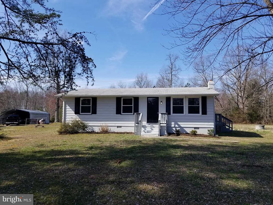 Sitting on almost 4 acres! Home has been completely remodeled. New floors, paint, kitchen cabinets, vanity, SS appliances, granite countertops, and HVAC. Quiet, country setting off of 301, conveniently located to both Fredericksburg and Richmond.