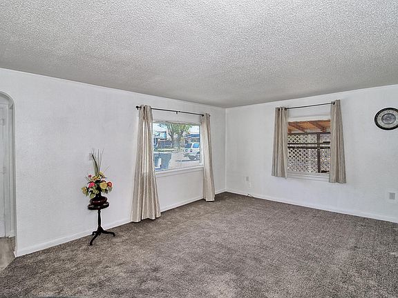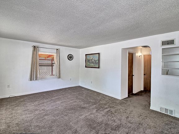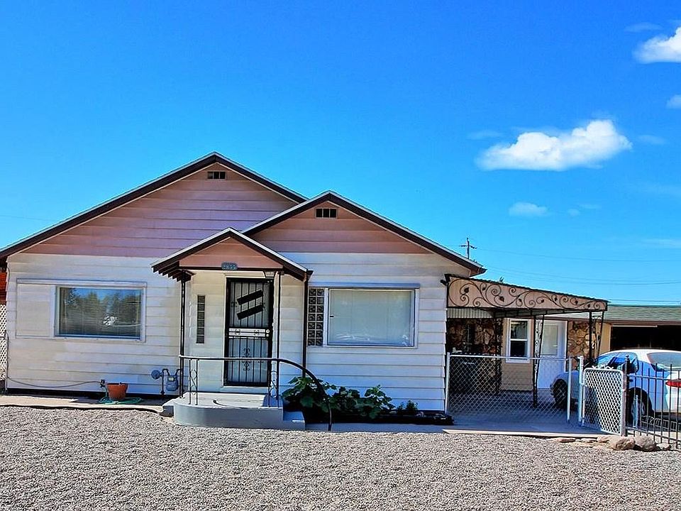 This 3 bedroom 2 bath home sits on .21 acres of fully fenced xeriscaped yard with plenty of room for toys and more outbuildings, in addition to the 2 sheds in place, no HOA. There is a separate entrance to the Primary Bedroom with a 3/4 en suite bathroom, possibly a mother in law set up. The kitchen is open to the living room and dining area, creating a bright nice open space. This home sits on a quiet dead end street and is priced to sell.